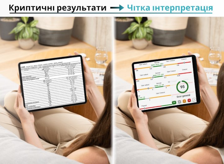Послуга доступна для всіх українців, не лише для тих, хто в Румунії. Таким чином, із PDF з результатами будь-якою європейською мовою ви отримаєте пояснення та інтерпретацію ШІ українською.
